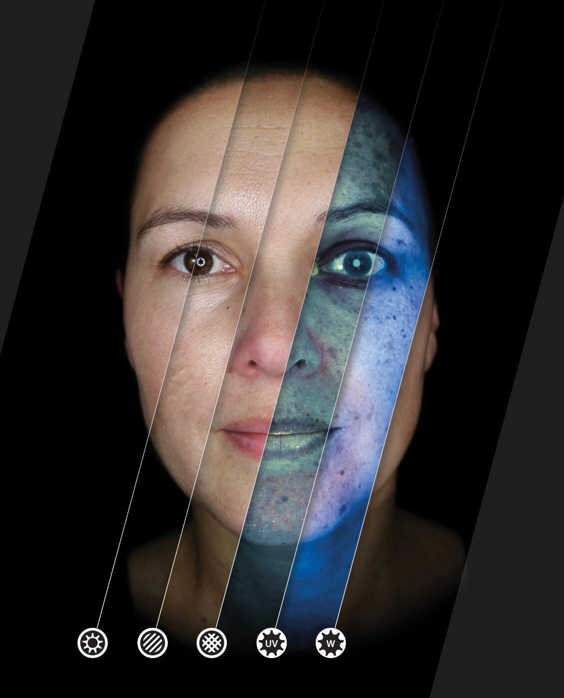 Die Kombination aus patentierter Fluoreszenz-Technologie, verschiedenen Licht- und Polarisierungsfiltern zeigt den Hautzustand klarer und kontrastreicher als herkömmliche Analysemethoden.
